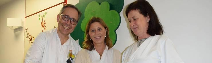 Immundiagnostiker Univ.-Doz. Dr. Michael Dworzak, Spendenbüro-Leiterin Mag. Andrea Prantl und Pflegedirektorin Stellvertreterin Marianne Perl freuen sich über die großzügige Spende. Foto (c) St. Anna Kinderkrebsforschung