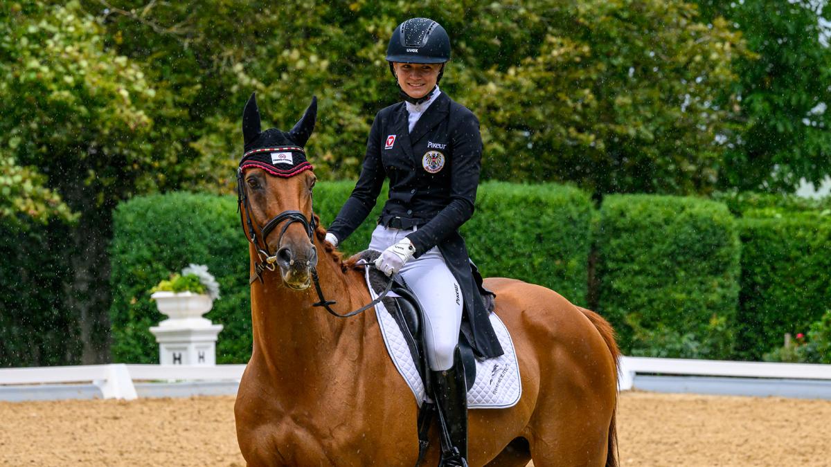 Auch mit ihren Tokio-Parnter DSP Fighting Line drehte Lea Siegl eine Proberunde und konnte fast nicht genug vom Viereck bekommen. Während die meisten Dressurreiterinnen und Dressurreiter schon wieder in ihren LKW Richtung Heimat brausten und draußen vor dem Augustin-Denkmal die Pony-Kinder-Siegerehrung stattfand, übte Siegl mit dem 16-jährigen Sportpartner. "Nach der EM in Frankreich findet gleich der Nations Cup in Belgien statt. Da komme ich nur zum Pferdetausch nach Hause und nehme Fighti und Cupido mit nach Arville", erklärt Lea Siegl.