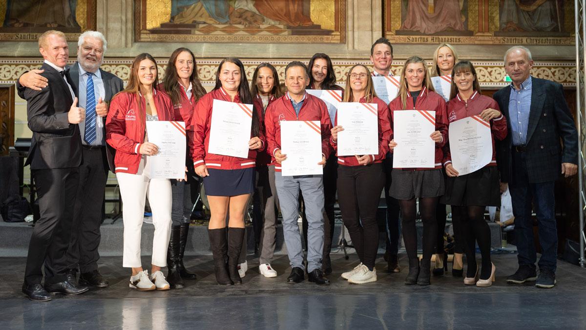 06.10.2022 - Die Bundessportakademie (BSPA) Wien lud zur Verleihung der staatlichen Sportlehrer:innen- und Trainer:innen-Diplome in den Festsaal des Akademischen Gymnasiums. Mit dabei elf neue staatlich geprüfte Reittrainer:innen in Olympischen Disziplinen, sechs in der Dressur, fünf im Springen.