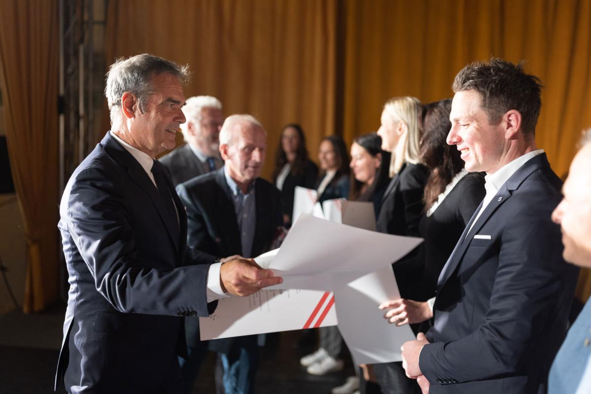 Wolfgang Hartweger, Springreit-Ausbildner Michael Rösch Senior und OEPS-Generalsekretär Dietrich Sifkovits überreichten die Diplome für die frisch ausgebildeten staatlich geprüften Reittrainer:innen an Amanda Hartung, Nadine Holzer, Alexandra Joos, Angelina Krüger, Melanie Reidinger, Miriam Sonntag (alle Dressur), sowie Johannes Dürager, Gini Pirker, Eva Resnitschek, Markus Saurugg, Lisa Schranz (alle Springen). Sie alle bekamen auch eine offizielle Trainer:innen-Jacke des Österreichischen Pferdesportverbandes überreicht.