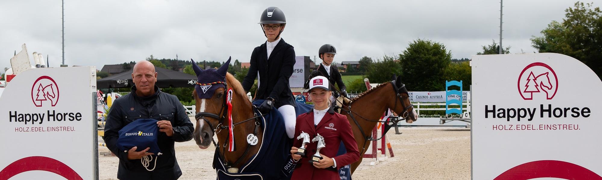 Die ersten drei Plätze beim Happy Horse Pony Grand Prix gingen heute an Deutschland. Leonie Assmann belegte heute mit Hankifax und Kaiser Karl die Plätze eins und zwei – gerade einmal 0,13 Sekunden lagen zwischen den beiden Ritten. Rang drei ging an Emile Baurand mit Ami. „Ich hatte mit beiden Ponys heute ein richtig gutes Gefühl. Es hat richtig Spaß gemacht und das Antreten hier in Lamprechtshausen hat sich definitiv ausgezahlt“, freut sich Assmann über ihren Doppelsieg.