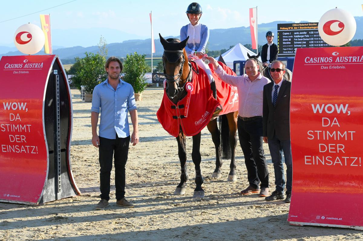 10.09.2021 - Der Reiterhof Stückler feiert seine Premiere als Gastgeber der heimischen Springreit-Bundesliga. Und besser hätte das Wochenende in St. Margarethen in Kärnten nicht beginnen können. Bei traumhaften Bedingungen setzte sich am Freitagnachmittag die Niederösterreicherin Jennifer Jaritz bei der fünften Etappe des Casinos Austria Future Cup durch und geht nun als Favoritin in das Superfinale, das am kommenden Sonntag über die Bühne gehen wird.