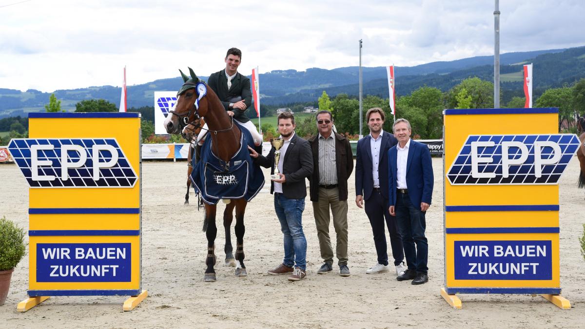 26.05.2024 - Gelungener Auftakt der 37. Auflage der OEPS Spring Tour powered by EPP in St. Margarethen bei Wolfsberg. Die erste Etappe der mit 100.000 Euro dotierten Springreitserie am Reiterhof Stückler ging an den Deutschen Daniel Böttcher mit Obora’s Little Richard vor Österreichs 18-jährigem Jungstar Lena Binder mit Celina 211 und Österreichs 69-jährigen Alt- und Staatsmeister Jörg Domaingo auf Lady D’Elle KES.