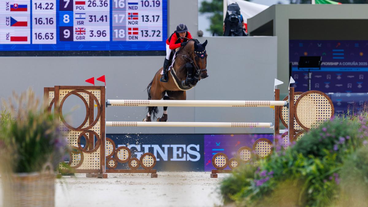 17.07.2025 - Auf Bronze folgt Pech! Österreichs Springreit-Equipe verpasst nach der EM-Sensation in Mailand vor zwei Jahren das Teamfinale in Spanien um hauchdünne 2,18 Punkte. Alessandra Reich mit Oeli R musste aufgeben, Markus Saurugg mit Obora’s Crunchy Nut verzeichnete 8, Teamkollege Max Kühner mit EIC Cooley Jump the Q 4 Fehlerpunkte. Einzig Katharina Rhomberg mit Cuma 5 blieb fehlerfrei. Das Team belegt mit insgesamt 26,11 Fehlerpunkten aus zwei Bewerben Rang 12. Rhomberg (Platz 24) und Kühner (Rang 39) sind immerhin im Einzel weiter. Und dort ist für die Vorarlbergerin tatsächlich noch alles möglich!