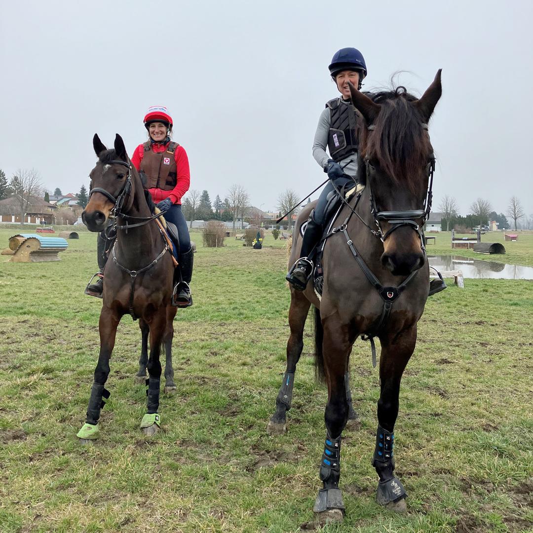 Bernhard Neunteufel und sein Team hatten einmal mehr für beste Trainingsbedingungen auf ihrer Reitsportanlage gesorgt. Trotz Nässe und Nebel konnte das xc-Training im großzügigen Geländepark problemlos absolviert werden. Der Boden hielt so früh im Jahr super und die Pferde hatten sichtlich Spaß über den festen Hindernissen.