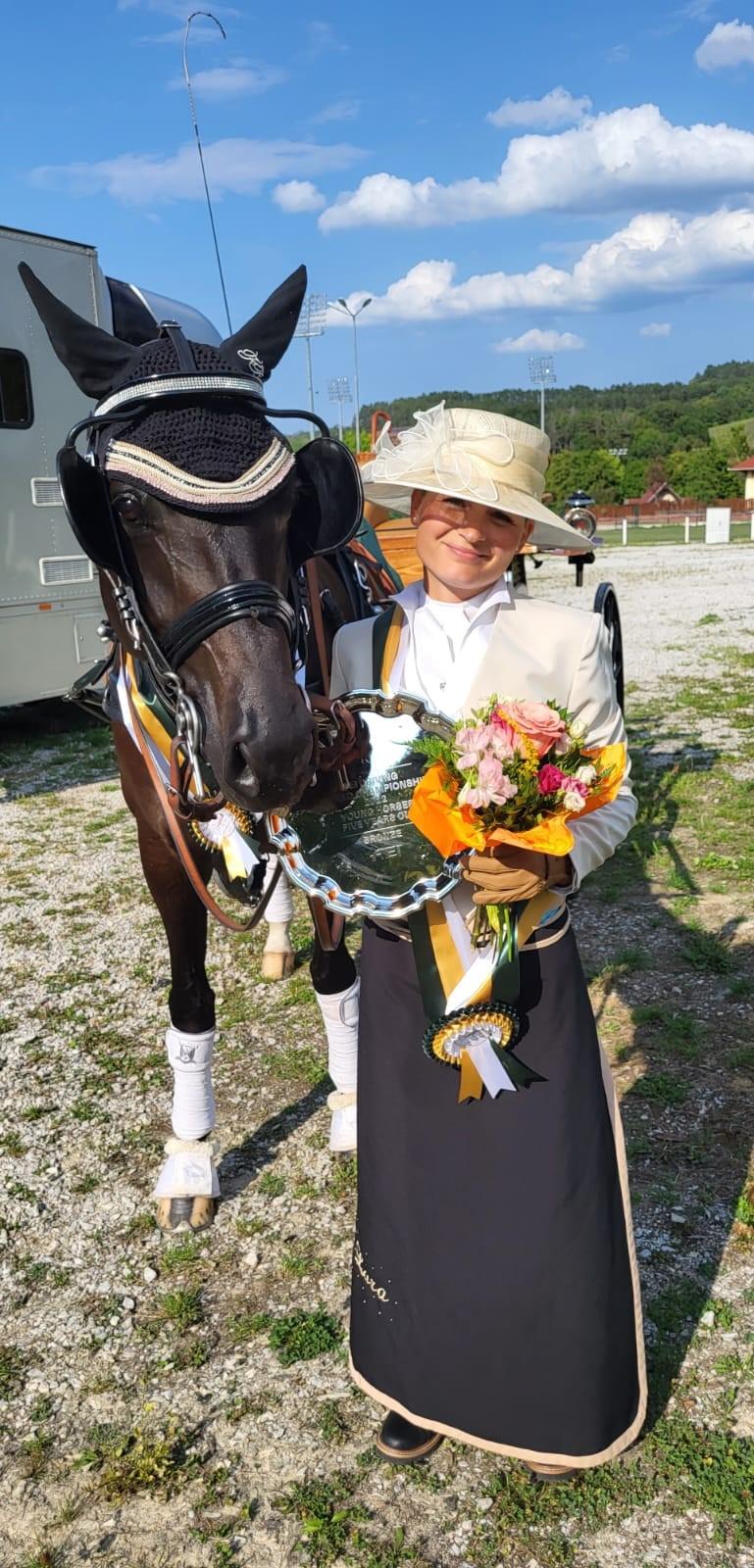 Die Einspänner-Vize-Staatsmeisterin überzeugte mit ihrer junge Stute Rexona W bei der WM vom ersten bis zum letzen Tag. Am Donnerstag fand die Einlaufprüfung bestehend aus dem Dressurfahren kombiniert mit Kegelprüfung statt. Das erfolgreiche Paar vom Reit- und Fahrverein Zurndorf fuhr auf den dritten Platz und schaffte es damit auf direktem Weg ins Finale, ersparten sich die zweite Qualifikation am Freitag.