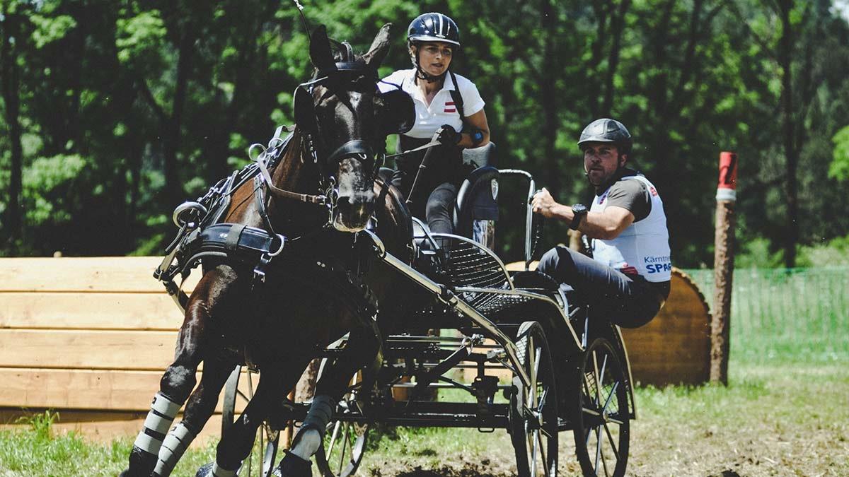 Lara Krejcerik vom Reit- und Fahrverein Zurndorf ist als einzige Österreicherin bei den 5-jährigen Fahrpferden am Start. Die Qualifikation erreichte die Burgenländerin in Stadl-Paura mit ihrem Nachwuchspferd Rexona W. Nach Dressur und Kegelfahren liegt Krejcerik mit gesamt 7,5 Punkten auf Platz 3.