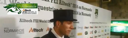 WEG Dressur Grand Prix, Stadion Michel d'Onano, Mixed Zone. Der Kärntner Championats-Debütant im Flashinterview nach seiner gelungenen Performance mit Auheim's Picardo, die mit 66,786 % bewertet wurde.