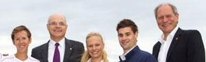Schon heute wurde am Donaukanal-Ufer der „Olympia-Look 2012“ offiziell vorgestellt: Die Beachvolleyball-Schwestern Doris und Stefanie Schwaiger, Dressur-Reiterin Victoria Max-Theurer, Ringer Amer Hrustanovic, Turner Fabian Leimlehner, die Paralympics-Athleten Sabine Weber-Treiber (Schwimmen) sowie die zweifachen Goldmedaillengewinner Wolfgang Eibeck (Rad) und Thomas Geierspichler (Leichtathletik) übten sich am Donaukanal-Ufer als Models. „Jeder Athlet bekommt 55 Einzelstücke im Wert von rund 4.000 €“, meint ÖOC-Präsident Dr. Karl Stoss. „In Summe kostet die Einkleidung knapp 800.000 €, diese Mittel werden aber praktisch zur Gänze von unseren Ausrüstern bzw. Sponsoren bereitgestellt.“