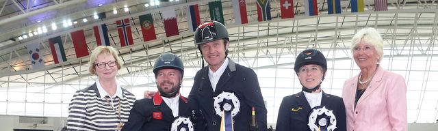 Pepo Puch mit seinem Kumpel Lee Pearson und Alina Rosenberg bei der Siegerehrung für den Team Test. Foto © Al Shaqab