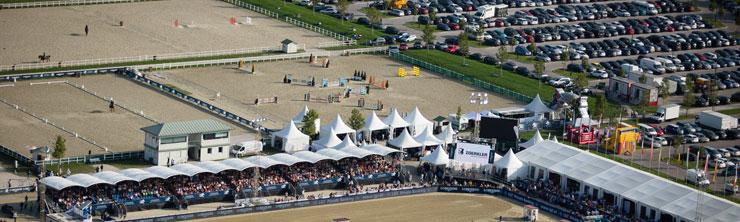 Beeindruckendes 200 Hektar großes Reiter- und Pferdeparadies: Magna Racino. Die Global Champions Tour war dort im Jahr 2014 zu Gast. Foto © Jürgen Hackl