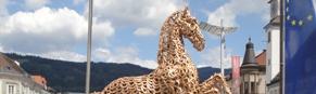 Eine beeindruckende lebensgroße Pferdeskulptur, gefertigt aus 1500 gebrauchten Hufeisen macht sich auf die Reise durch Österreich, um für die EM im Orientierungsreiten, welche von 3. bis 5. September 2010 in St. Stefan ob Leoben stattfindet, zu werben.