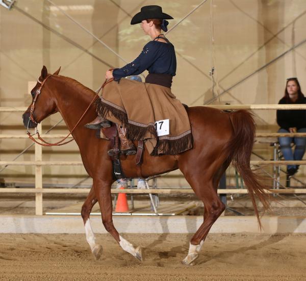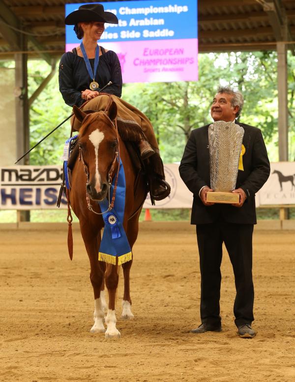 Susanne Schuh & Loggia konnten ebenfalls zwei Goldmedaillen in der E CH erringen: Traditional Arabian Riding & All Around western. Multitalented wie viele Vollblutaraber, haben sie auch noch in Masters Championships Traditional Arabian Riding GOLD, Western Pleasure silver & Ladies Side Saddle Bronze erreicht!! Newcomer dreimal Gold GOLD: Trail, Western Pleasure & Ladies Side Saddle. Damit sind sie nächstes Jahr aus dem Newcomer Championship wegen Überqualifikation nicht mehr in diesen Disziplinen dabei.