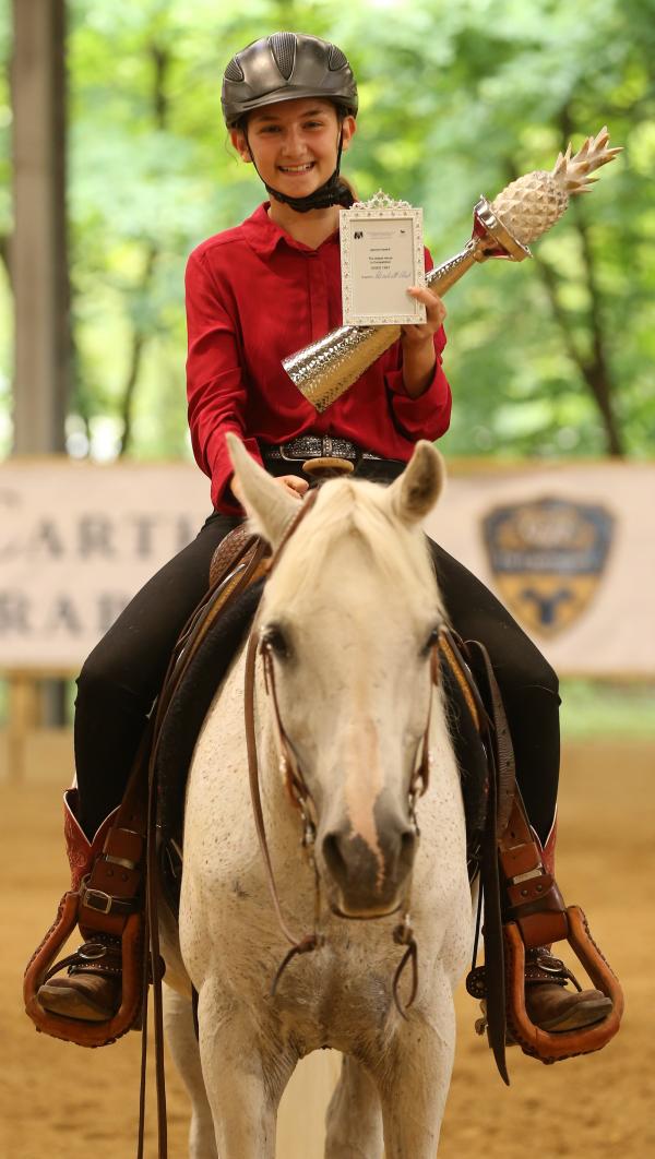 Specialpreise für das älteste Pferd: 23 alten ENZO mit 13 jähriger Tina Schatz erfolgreich in NC Ch Traditional Arabian Riding 3.platz, Western Pleasure 5. , Masters Championships Trad.Arabian Riding 4. & Western Pleasure 6.. ENZO war vor einigen Jahren E Ch Reining GOLD und ist nun als alter aber fitter Professor der Lehrmeister von Tina.