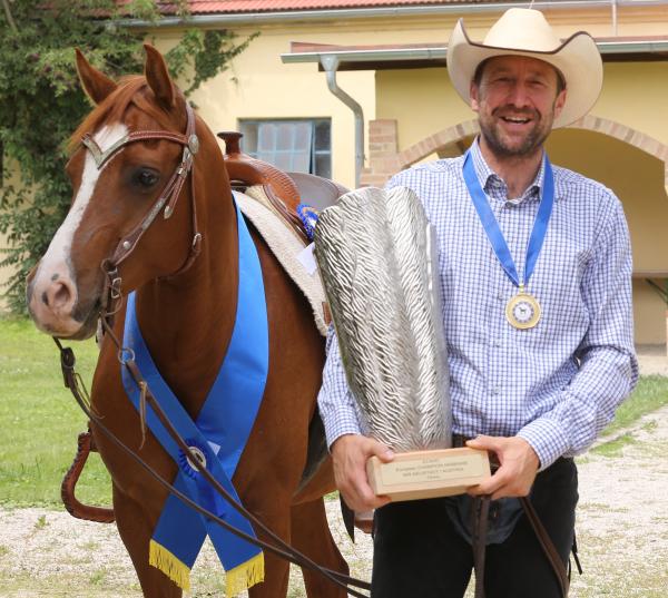 Einer unserer besten Trail & Westernreiter, Instruktor und Trainer Andre Reitermayr hatte sich etwas ganz Besonders vorgenommen. Er wollte seine bereits im letzten Jahr hochdekorierte Stute GFH Sandhya (Besitzer Elisabeth Steiner) auch in der klassischen Dressur zeigen. Mit Erfolg. Silber im Prix St Georg und 4.Platz Trail. Für dieses in zwei verschiedenen Reitweisen startende und erfolgreiche Pferd gab es eine Special Trophy.