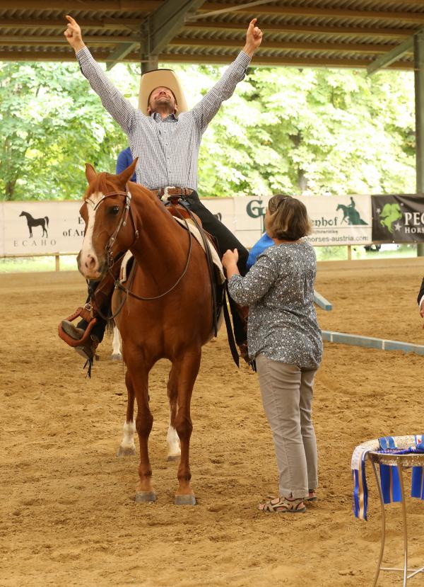 Ranch Riding, die zweite neue Titeldisziplin hat ebenfalls viel Anklang bei den Reitern gefunden. Ch Silverleight & Verena Böckle aus Deutschland holten hier das EM GOLD. Letztes Jahr Reining EM Champion, heuer musste sie sich gegen Gerhard Hairas und Whata Hottie geschlagen geben. Gerhard Hairas einer unserer ältesten und treuesten Teilnehmer konnte das EM GOLD in der Reining in einem sehr hochscorigen Feld holen