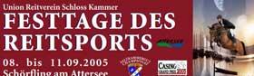 Der prächtige Turnierplatz des URV Schloss Kammer in Schörfling am Attersee ist vom 15.-25.Juni 2006 die Bühne für die FESTTAGE DES REITSPORTS und Anziehungspunkt für tausende Besucher aus nah und fern. Rund 700 SpitzenreiterInnen aus Österreich und unseren Nachbarländern und der hoffnungs-volle Reiternachwuchs kämpfen