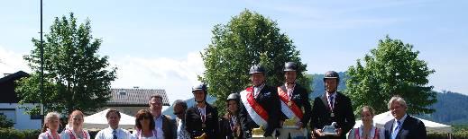 Foto v.r.: Piet Hoyos (Richter), Olivia Holzer (Schleifenmädchen), Patrick Zrnjevic, Johanna Eichinger, Gerhard Ledl, Sarah Abel, Constanze Mühlbauer, Dr. Ernst Griebnitz -(Präsident Landesfachverband Salzburg), Friedrich Kreil (Bürgermeister von Straßwalchen), Christiane Oelinger (Präsidentin Salzburger Islandpferdevereinigung), Wolfgang Daichendt (Referent des Salzburger Pferdesportverbandes), Lena Mittendorfer und Valentina Purwitzer (Schleifenmädchen).