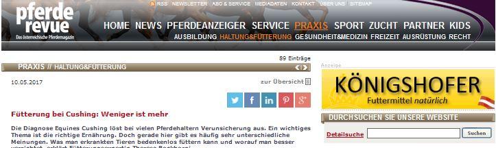 Was tun bei Diagnose Equines Cushing? Die richtige Ernährung ist dabei ein wichtiges Thema. Was erkrankte Tiere fressen dürfen und was nicht, erläutert Fütterungsexpertin Theresa Bockhorni im Interview mit pferderevue.at