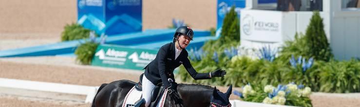 Julia Sciancalepore legte ein gelungenes WM-Debüt in Grade 1 der Paradressur hin und Springreiter Max Kühner liegt nach dem Zeitspringen im Plansoll.