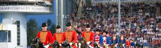 Mit der Feier haben die FEI Europameisterschaften Aachen 2015 begonnen. Die Wettkämpfe dauern bis zum 23. August. In den fünf Disziplinen Springen, Dressur, Fahren, Voltigieren und Reining werden 13 Goldmedaillen vergeben. Mehr als 400 Sportler aus 30 Nationen werden auf dem traditionsreichen Turniergelände in der Aachener Soers erwartet. Alleine ARD, ZDF und WDR übertragen 30 Stunden aus Aachen, ein Großteil wird live gesendet.