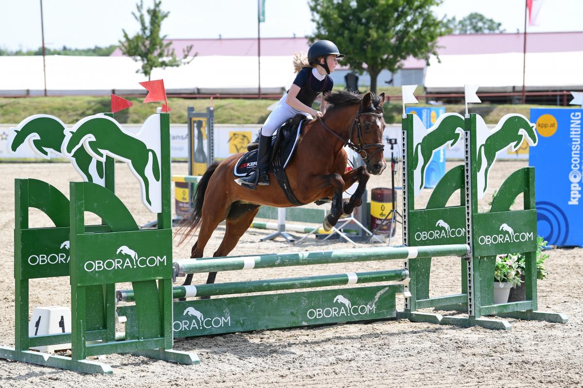 28.05.2023 - Die zweiten 100 Punkte für den Etappensieg im Effol Pony Cup (für Reiter:innen bis 12 Jahre) holte sich Linda Eder mit Lena 8. Das oberösterreichische Duo bewältigte bei perfekten Bedingungen den 95 Zentimeter hohen Parcours fehlerfrei in einer Zeit von 42,84 Sekunden. Damit ließen die beiden die Lokalmatadorin Livia Schranz und Harold B um gerade einmal 0,03 Sekunden hinter sich. Die 9-Jährige gab sich im Siegerinneninterview gelassen: „Ich bin heute so stolz auf unsere Leistung. Zum ersten Mal haben wir Livia geschlagen, das bedeutet uns sehr viel. Ich habe während meiner Runde schon immer auf die Uhr geschaut und die Sekunden sind so schnell vergangen. Schneller hätten wir nicht mehr galoppieren können – ich bin schon im Sattel richtig herumgeflogen. Ein unglaublich tolles Gefühl.“ Platz 3 holten sich Samea Zwickl und Donit, die die erste Etappe am Reiterhof Stückler für sich entscheiden konnten, mit 46,13 Sekunden.