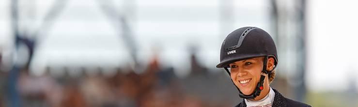 Noch einen Zacken besser lief’s dann mit musikalischer Untermalung. Da punktete das Paar ganz besonders in den vorwärts angelegten Lektionen. Hohe Noten gab’s auch für die Harmonie zwischen Pferd und Reiterin, die Choreografie und den Schwierigkeitsgrad. In Summe kamen Valenta und der elegante Desperados-Sohn auf 72,535 Prozent – Platz acht.