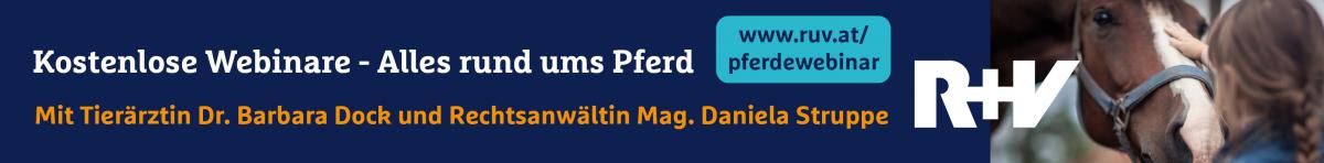 Rechtsanwältin Mag. Daniela Struppe behandelt die Themen rund um Haftungsfragen beim Pferd. Tierärztin Mag. Barbara Dock widmet sich in zwei weiteren Terminen der Pferdegesundheit: Von Koliken bis zur Erstversorgung. Für wichtige versicherungstechnische Fragen begleitet Martin Löffler, Direktionsbevollmächtigter VTV* und Leiter der R+V-Tierversicherung in Österreich, alle Webinartermine.