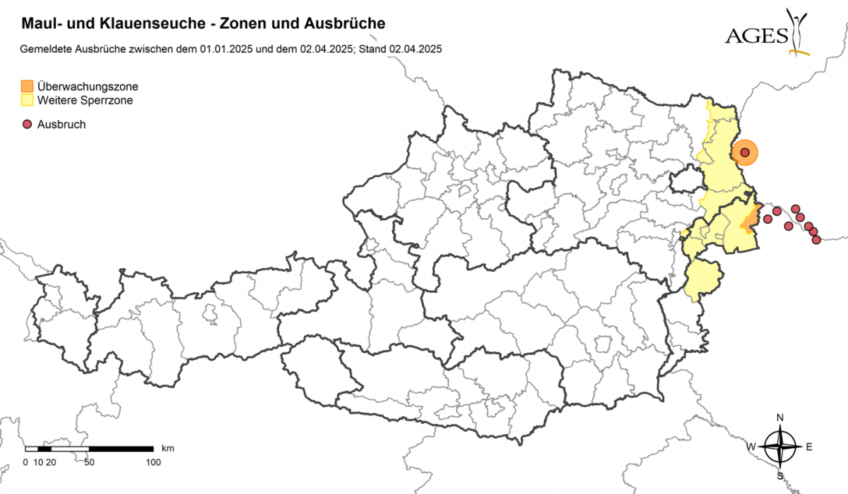 In Ungarn und der Slowakei wurden mittlerweile mehrere Fälle der hochansteckenden Maul- und Klauenseuche (MKS) bei Nutztieren bestätigt. Um das Risiko einer Einschleppung der Seuche nach Österreich zu verringern, gibt es ab sofort Einfuhrbeschränkungen für Tiere und Güter aus Ungarn und der Slowakei für