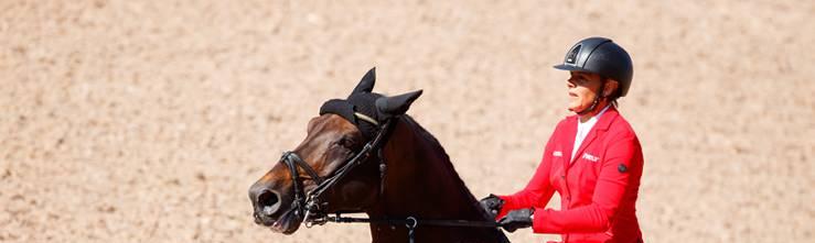 „Der Druck war groß und als ich das Klackern beim vorletzten Hindernis gehört habe, dachte ich schon: ,Die ist jetzt unten!‘ War zum Glück nicht so. Schade, dass wir nicht in der Zeit geblieben sind. Aber der Fehlerpunkt ist auf diesem selektiven Parcours, bei dem die Zeit doch sehr eng berechnet war, nicht weiter schlimm. Cayetano hat das sogar ziemlich leicht aussehen lassen“, sagte die viermalige EM-Teilnehmerin Julia Houtzager-Kayser unmittelbar nach dem Ritt mit ihrem 13-jährigen Hengst. Das Duo war ohne Abwurf, aber mit einem Zeitfehlerpunkt ins Ziel gekommen.