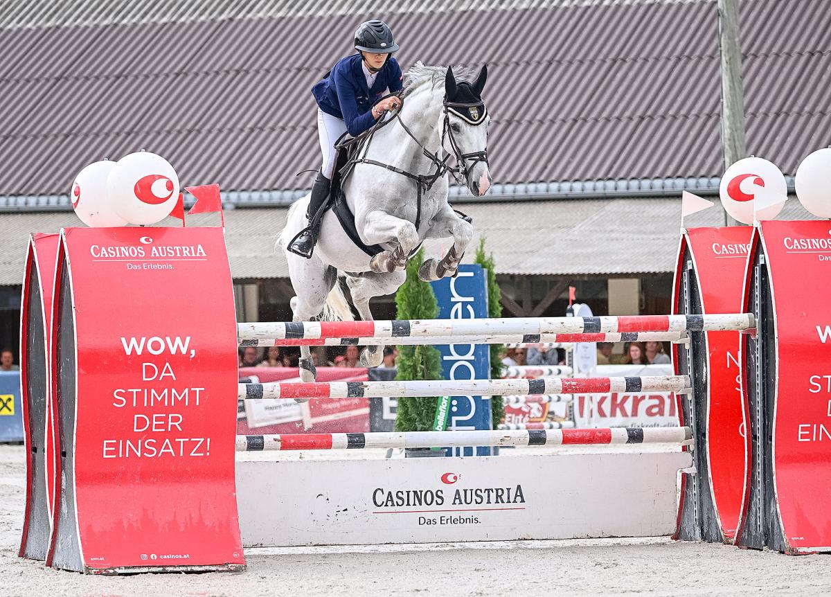 07.08.2022 - Am Freitag ebnete Sakrileg 3 Sally Zwiener in der vierten Etappe des Casinos Austria Future Cup mit dem Tagessieg den Weg in das große Finale der Top-8. Am Finaltag sattelte die Oberösterreicherin, die die ersten drei Etappen heuer ausgelassen hat, mit Giacomo Agostini FR ein anderes Pferd, und das sollte sich bezahlt machen. Zwiener ging am Sonntag als erste Reiterin in den Parcours und sollte mit ihrem Sportpartner die einzige Paarung sein, die den Parcours ohne Fehler und in 72,62 Sekunden absolvierte. Somit ging der Sieg des Casinos Austria Future Cup 2022 an Sally Zwiener. Platz 2 ging an Michele Ruth und TH Champions League (4/71,78). Nicole Berner und Antara 2 (8/69,30) komplettierten als Dritte die Top-3.