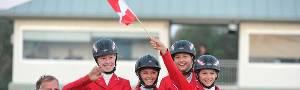 EM Springen Ch-J-YR - Magna Racino/NÖ. Die österreichische Children-Crew beendete die EM mit acht Strafpunkten und holte erstmals in Österreichs Pferdesportgeschichte Team-Silber. Gold ging an die Belgier, die auch im zweiten Umlauf zwei Nullrunden hatten und am Ende auf vier Strafpunkte kamen.