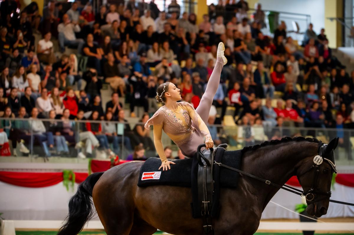 02.08.2025 - Die Juniorinnenklasse der Voltigier-Weltmeisterschaft war mit 57 Starterinnen aus 26 Nationen das am stärksten besetzte Championat in Stadl-Paura, und die Entscheidung fiel – wie erwartet – zwischen Titelverteidigerin Clara Ludwiczek aus Tirol (VG Pill) und der amtierenden Europameisterin Josephine Vedel Sondergaard Nielsen (DEN). Letztlich hatte die 17-jährige Dänin um fünf Hundertstel die Nase vorne und holte in ihrem letzten Juniorenjahr den Weltmeistertitel mit einer Gesamtnote von 8,666 vor Clara Ludwiczek auf Asti Royal an der Longe von Lena Kalcher-Prein – mit einer sensationellen Kürnote von 8,940 und einem Gesamtergebnis von 8,618.