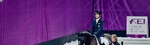 Für den Oberösterreicher Thomas Haller ging es bereits heue Vormittag ins Viereck. Nach den sehr guten Trainingseinheiten in den letzten Tagen war die Zuversicht auf ein gutes Abschneiden groß. Doch ein toller Anfang endete leider in zu viel Nervosität von „Haller’s Dessino“. Während der Prüfung zeigte der als normalerweise ruhig und konzentriert geltende „Haller’s Dessino“ viel Temperament und ließ es rasant angehen. Thomas Haller ist die Enttäuschung ins Gesicht geschrieben: „Dessino war ziemlich heiß. Er hat sich von dem riesigen Stadion und der Musik zu sehr beeindrucken lassen und so mussten wir die Prüfung abbrechen. Natürlich bin ich ein bisschen enttäuscht, aber so ist der Sport. Er ist noch sehr jung und in vier Jahren, bei den nächsten Spielen, kann er dann zeigen wie viel Potential in ihm steckt“.