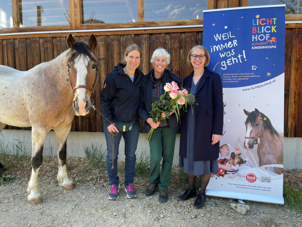 17.05.2025 - Gundula Hauser, die Grande Dame des therapeutischen Einsatzes von Pferden in Österreich, feierte am 15. Mai ihren 80. Geburtstag mit einem Fest im Kinderhospiz Lichtblickhof – jenem Ort, dessen Grundstein sie selbst vor über 20 Jahren legte.