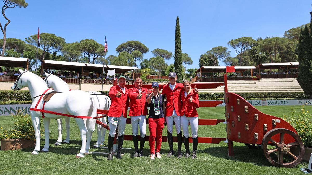 Der Sieg am von Pinien und Zypressen umgebenen ovalen Rasenplatz im Park Villa Borghese, der nur einen Steinwurf vom Vatikan entfernt mitten im Herz der italienischen Hauptstadt liegt, ging an Deutschland (0 Fehlerpunkte) vor Irland (4) und Belgien (8).