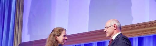 Roswitha Zink mit -Lotterien-Generaldirektor Karl Stoss. Die Equotherapeutin vom e.motion Lichtblickhof wurde von den "Presse"-Lesern und Usern in der Kategorie Humanitäres Engagement zur Österreicherin des Jahres gewählt.