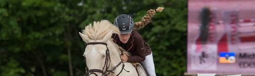 Noelle, Denise und Michele Ruth (im Archivbild beim EQWO.net Pony Grand Prix in Lamprechtshausen mit Edenside Blue Eyes) bewiesen am vergangenen Wochenende beim internationalen Nachwuchsturnier in Chevenez (SUI) ihr Talent mit Top-Platzierungen.
