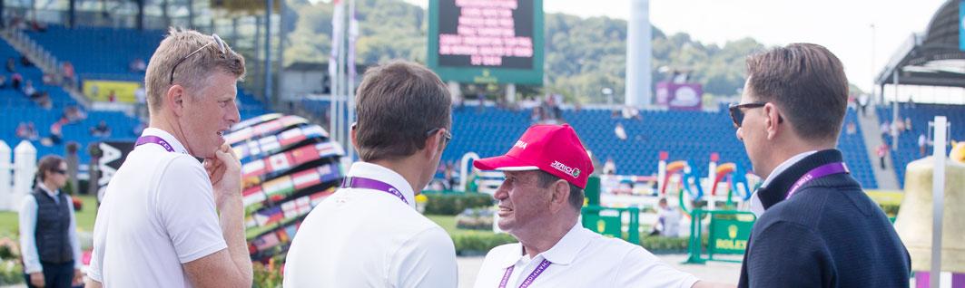 Gekommen sind alle: Österreichs EM-Team von Aachen ist mit Max Kühner, Dieter Köfler, Roland Englbrecht und Markus Saurugg vollzählig vertreten. Dazu kommen unter anderem Staatsmeister Gerfried Puck, WM-Teilnehmerinnen Stefanie Bistan und Astrid Kneifel, A-Kaderreiterin Julia Kayser, die in den Niederlanden lebt, der junge Vorarlberger Christian Rhomberg und natürlich Teamchef Hugo Simon, der es sich nicht nehmen lässt auch selber zu reiten.