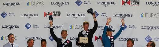 Der Sieg im Stechen, das nur vier fehlerfrei gebliebene Reiter-Pferd-Paarungen erreichten, holte der Deutsche Marcus Ehning und sein 17-jähriger Hengst Plot Blue mit dem einzigen Nullfehlerritt. Ehning, der auf der Global Champions Tour heuer schon einen zweiten und einen dritten Platz erreichen konnte, blieb damit als einziger im 44-köpfigen Starterfeld in allen Umläufen fehlerfrei.