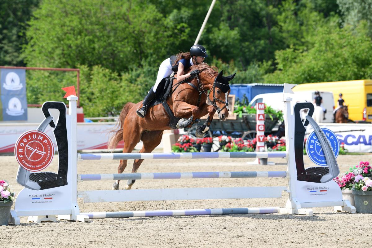 28.05.2023 - Im FreeJump Kids Cup dürfen Reiter:innen bis 16 Jahre mit ihren Pferden über die Höhe von 100 cm ran. Der Sieg im 25-köpfigen Starter:innenfeld ging an die Niederösterreicherin Johanna Berger mit Helena W. Die 14-Jährige vom Verein Sportpferde Team Roubal blieb mit ihrem Pferd fehlerfrei in einer Zeit von 48,81 Sekunden. „Unglaublich! Mit einem Sieg hätte ich heute überhaupt nicht gerechnet. Im ersten Moment hat es mir ein wenig die Sprache verschlagen, aber jetzt habe ich es schon langsam realisiert. Wir harmonieren so gut zusammen, daher tut uns dieser Sieg wirklich sehr gut“, sagt Berger, die sich mit 0,17 Sekunden Vorsprung auf die zweitplatzierte Lilliane Hermann mit Quimiro durchsetzen konnte. Platz 3 ging an Anna Salzgeber und Certo (0/54,67).