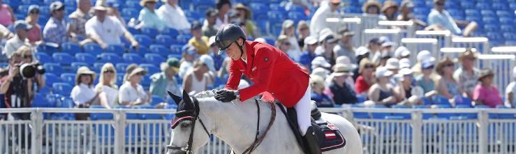 Strahlend gab der 44-Jährige, der Österreichs Springteam in diesem Sommer mit einem Sieg in Budapest in die Champions League der Nationenpreise in Europa Zurückgeführt hatte, in der heißen Sonne von North Carolina Interview um Interview: „Darauf hatten wir gehofft, aber nicht damit gerechnet. Das ist eine ganz tolle Überraschung. Ich hatte ein Supergefühl, ich glaube sogar, dass Chardonnay von Runde zu Runde besser springt. Er kommt richtig in Fahrt. Jetzt ruht er sich morgen schön aus und dann freuen wir uns auf den Sonntag!