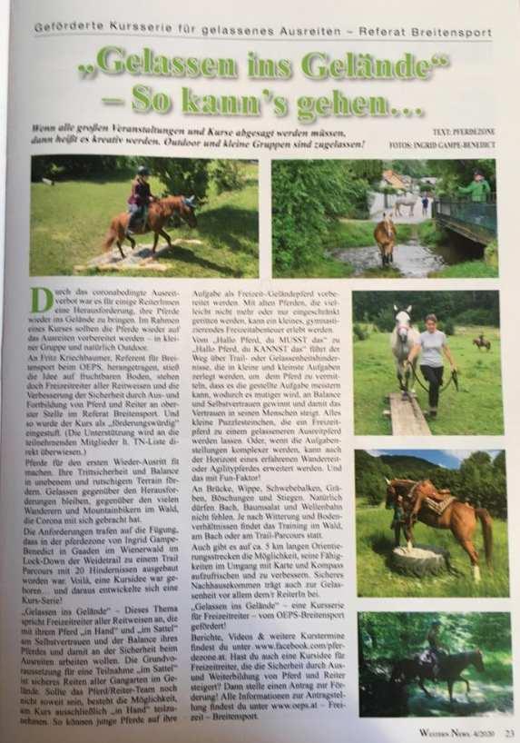 Gelassen ins Gelände – eine Kursserie startet durch; es gibt Infos zum selbständigen Training für gelassenes Ausreiten – vielen Dank an das WN-Redaktions-Team!