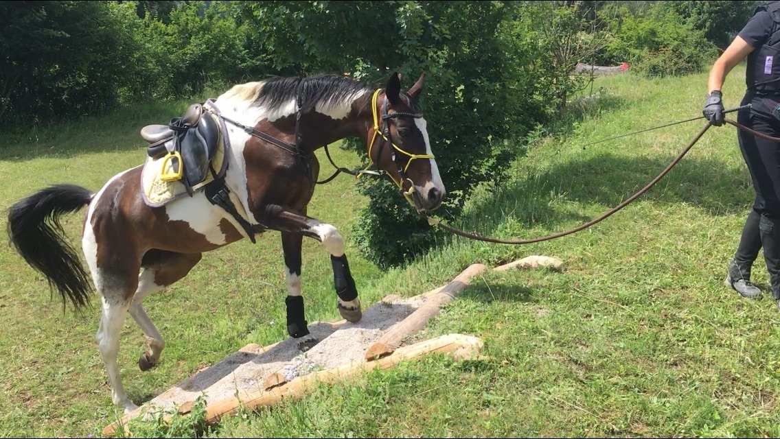 19.07.2020: Kurs auf der Extremstrail-Strecke der pferdezone in Gaaden bei Mödling mit Ingrid Gampe-Benedict. Balance-Training in Hand und im Sattel. Vorbereitung für Pferd und ReiterInnen für genussvolle Ausritte.