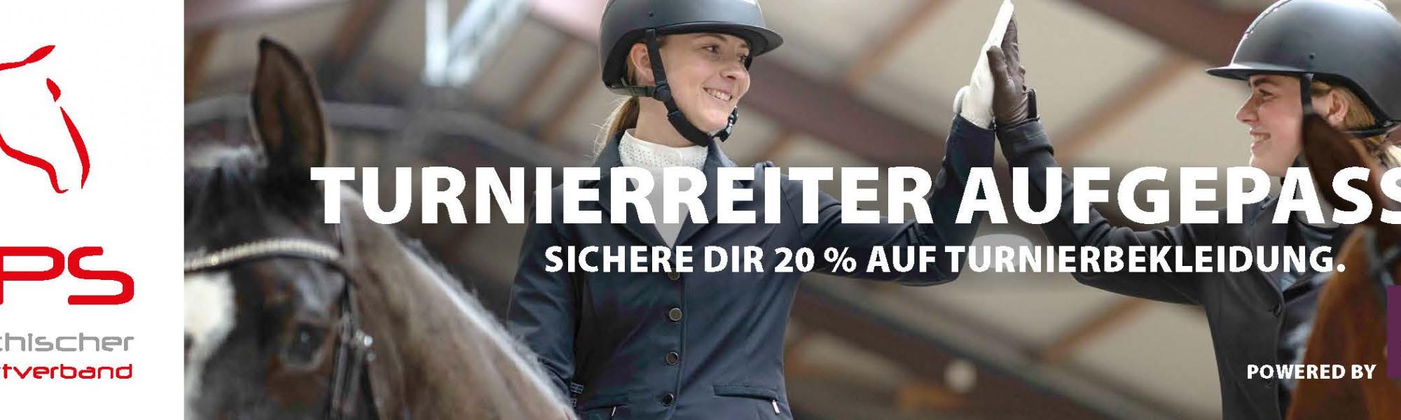 (* Gilt vom 01. bis 30.04.2024 für einen Artikel aus der Turnierkollektion. Ausgenommen sind ABUS/Pikeur Helme, UVEX, Cavallo Lederware, Kingsland Classic, Eskadron, Freejump, Peiker Cee, Hippomed, Inhalate, Maßanfertigungen/Sonderanfertigungen, die Warengruppen Sättel, Futter, Einstreu und Literatur sowie reduzierte Ware und Gutscheine sind ausgenommen. Aktion gültig nur auf im Store vorrätige Ware. Ware kann nicht reserviert werden und ist vom Umtausch ausgeschlossen. Nicht mit anderen Rabattaktionen/Treuepunkten kombinierbar, nicht ONLINE einlösbar, gültig nur in Österreich. Bei allen Angeboten handelt es sich ausschließlich um unverbindliche Preisempfehlungen. Alle Preise in Euro inkl. der gesetzlichen MwSt. Irrtum und Druckfehler vorbehalten. Abgabe in haushaltsüblichen Mengen, nur solange der Vorrat reicht).