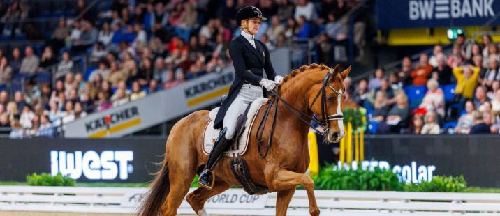 17.11.2025 - Beim Dressur-Weltcup im Rahmen des Stuttgart German Masters sammelten Bettina Kendlbacher und Broadmoars Don Alfredo AWÖ Punkte. Das steirische Duo belegte in der Grand Prix Kür Platz 14 und erhielt 3 Weltcuppunkte. weiter lesen