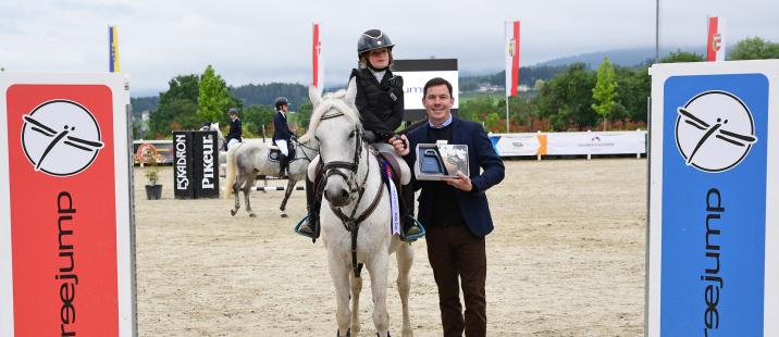 26.05.2024 - Ida-Vivienne Fischer holte sich auf der ersten Etappe der OEPS Spring Tour powered by EPP in St. Margarethen nach Platz drei im Effol Pony Cup im anschließenden Freejump Kids Cup den Sieg mit Sportpartnerin Toffiefee. weiter lesen