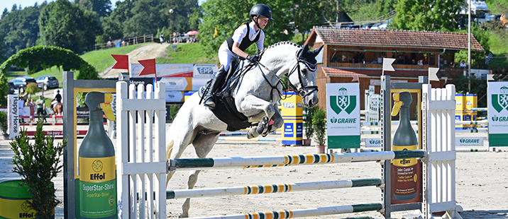 11.08.2024 - Beim Happy Horse Nachwuchs Cup setzte sich die junge Salzburgerin Lena Koller mit Nioricci nach fehlerfreiem Ritt durch. Die Gesamtwertung gewann Julia Urch mit Enya S Z bei ihrem letzten Auftritt in dieser Serie überhaupt. weiter lesen