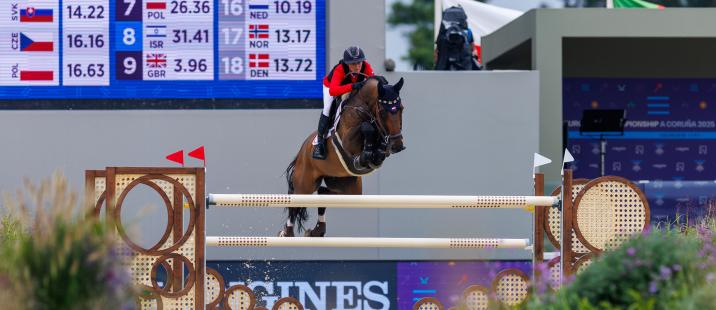 16.07.2025 - Österreichs Springreit-Equipe liegt nach Tag 1 der EM im spanischen La Coruna auf Platz 11. Alle mussten jeweils einen Abwurf hinnehmen. Das Finale der Top-10 bleibt dennoch in Reichweite: Es fehlen nur 0,39 Punkte. weiter lesen