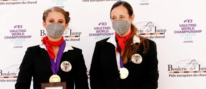 02.08.2021 - Zwei Medaillen brachten Österreichs NachwuchssportlerInnen von der Voltigier-J-WM in Le Mans mit nach Hause: Gold gab es für Anna Weidenauer und mit ihrem Partner Paul Ruttkovsky erturnte sie dann noch Silber im Pas de deux. weiter lesen